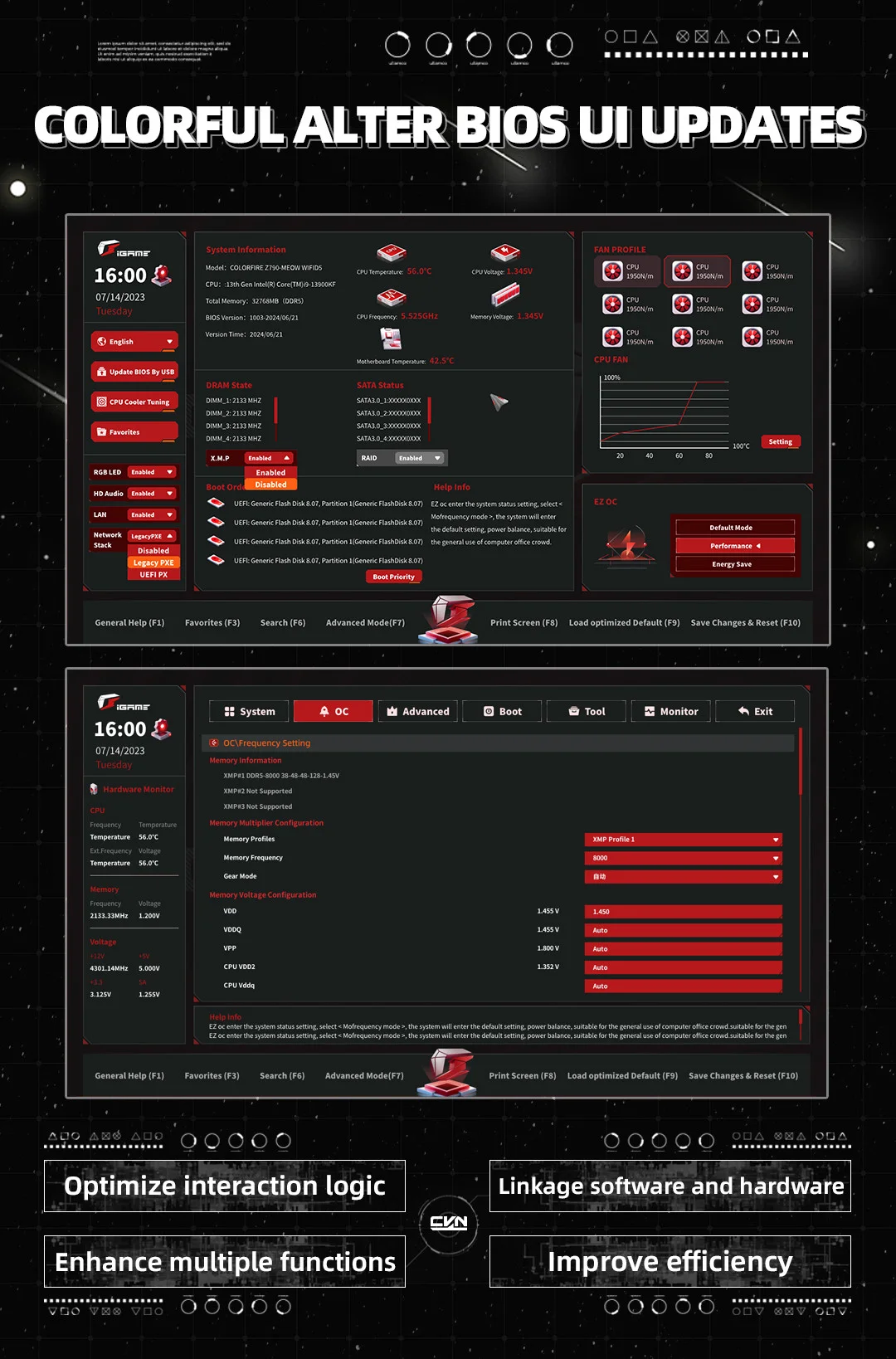 İşlemci Desteği Anakartın LGA 1851 yuvasına uyan Intel® Core™ Ultra işlemcileri destekler (* En son bellek uyumluluk listesi için lütfen www.colorful.cn adresini ziyaret edin)