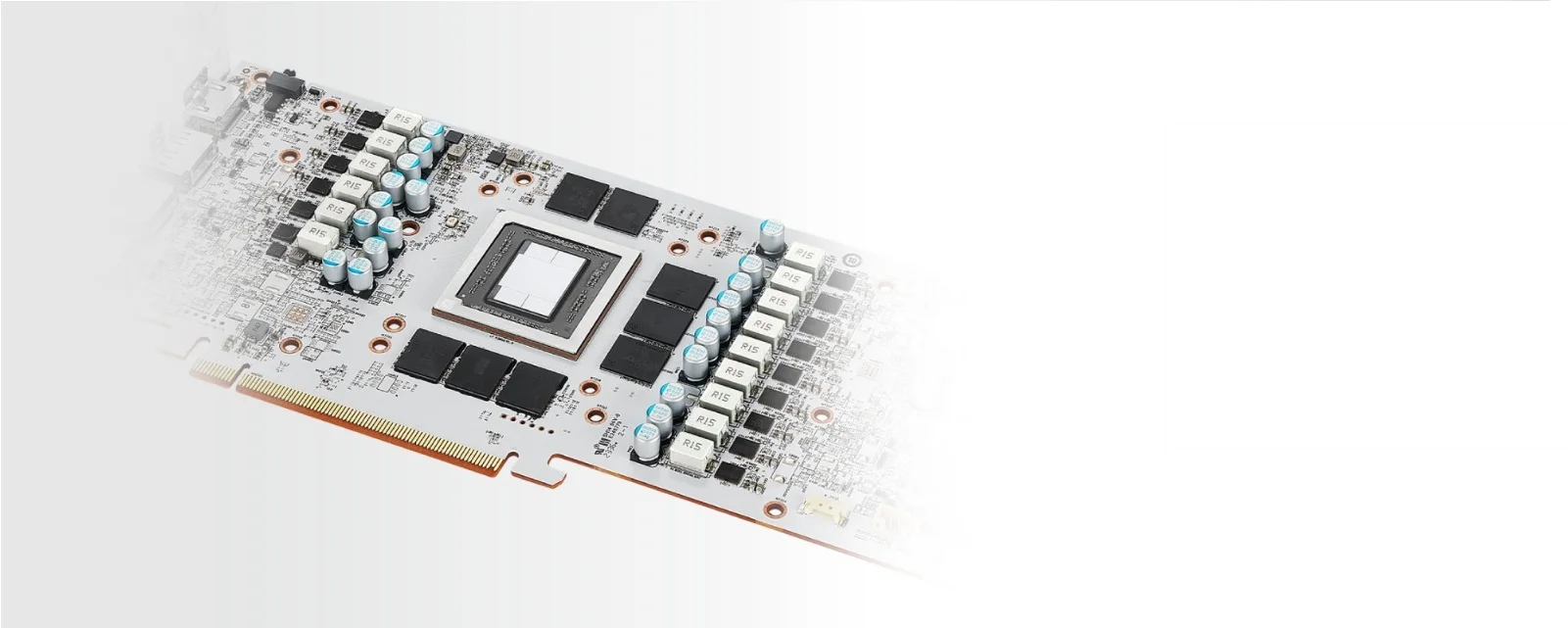 Hellhound RX 7800 XT'de 2 oz güç katmanı da dahil olmak üzere birinci sınıf 14 katmanlı yüksek TG PCB Kartı kullanılmıştır; Bu şekilde tasarlanmış bir PCB, iletim sırasında sinyal kaybını azaltır: özellikle yüksek güç akımları için, ilave stabilite ile birlikte önemlidir.