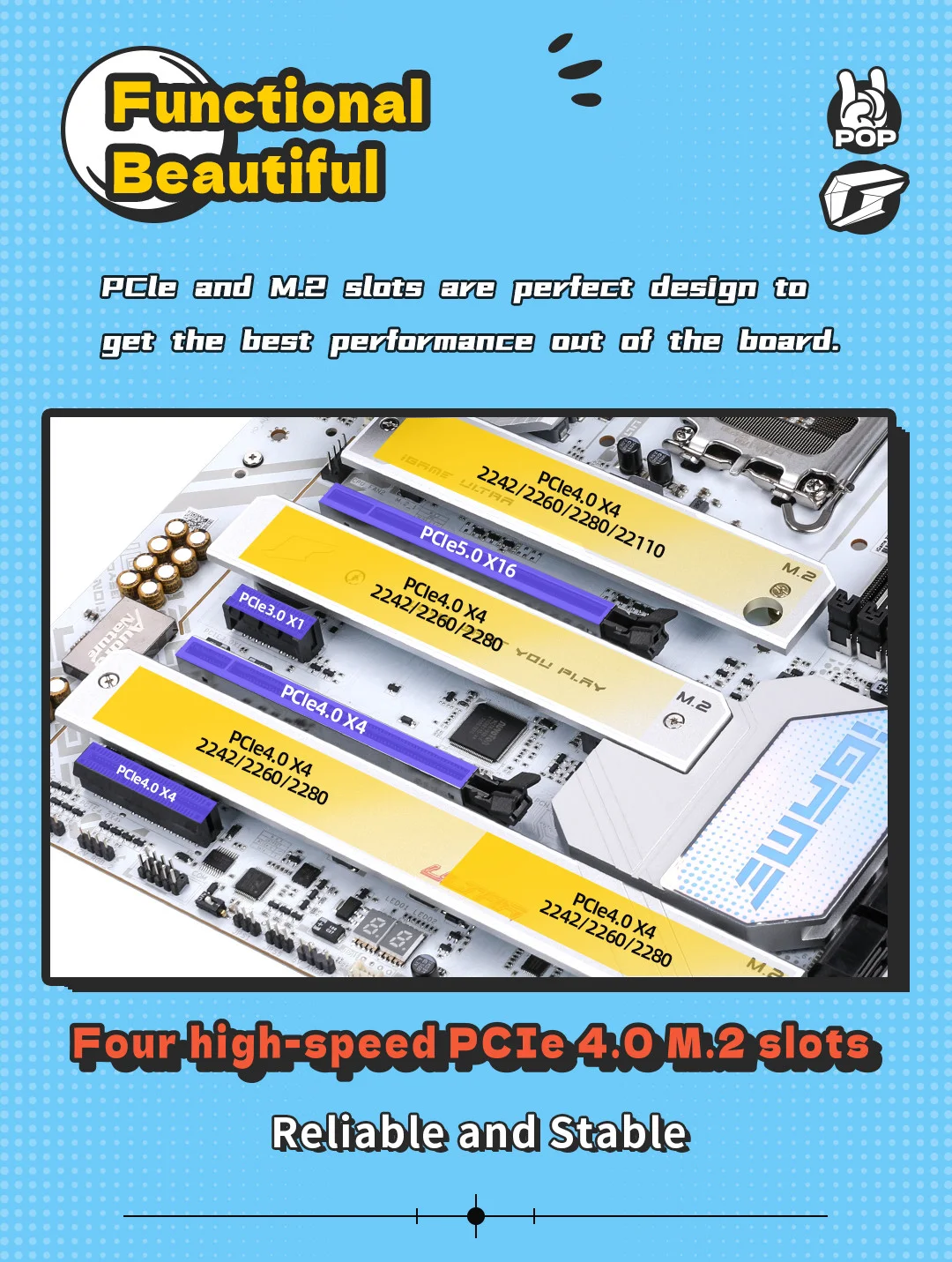 PCIe ve M2. yuvaları, karttan en iyi performansı almak için mükemmel bir tasarıma sahiptir.